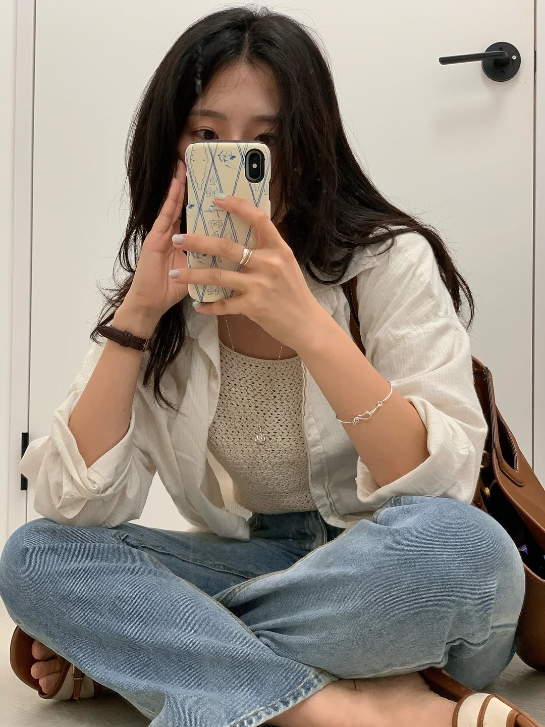 그리고 빼놓을 수 없는 세미부츠컷 데님 팬츠! 👖 슬로우앤드의 데님은 워낙 입소문이 자자해서 늘 믿고 구매하게 되는데요. 이 데님 역시 기대 이상이었어요. 허리는 얇아 보이게, 골반은 볼륨감 있게 잡아주면서도 허벅지부터는 과하지 않게 떨어지는 핏이 정말 예술이더라고요! 덕분에 하체 군살 걱정 없이 날씬하고 길어 보이는 실루엣을 연출할 수 있었답니다. 👖✨